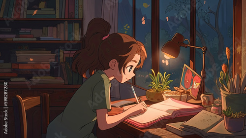 vibe, write, anime, evening, desk, study, calm, homework, studying, tranquil, atmospheric, chill, table, home, manga, household, artwork, wooden, sunlight, messy, background, minute, style, colourful, hours, colours, reflections, interior, relaxed, room, empty, modern, dawn, dusk, cosy, light, homelike, rain, tree, night, city, city landscape