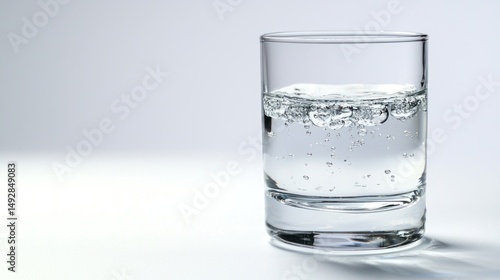 A transparent glass of pure water against a white background, representing cleanliness and simplicity