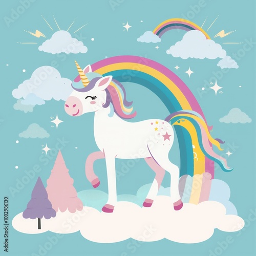 unicorn, horse, cute, cartoon, magic, fantasy, illustration, rainbow, animal, dream, design, vector, beautiful, sweet, art, pony, fairy, character, pink, baby, happy, horn, background, fairy tale, imagination, funny, poster, mythology, white, card, print, cloud, symbol, children, children, drawing, sky, blue, fun, tale, graphic, smile, little, star, wallpaper, colours, fairy tale, pegasus, girl