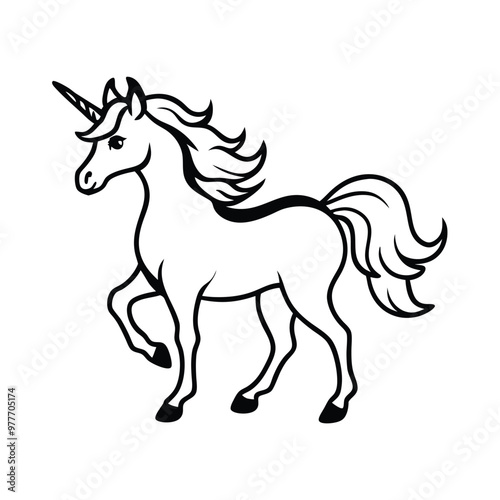 a unicorn, silhouette vector art illustration clipart, isolated white background