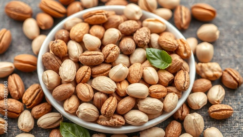 A variety of healthy nuts including cashews, pistachios, hazelnuts, walnuts, and almonds in a mix, protein, cashew