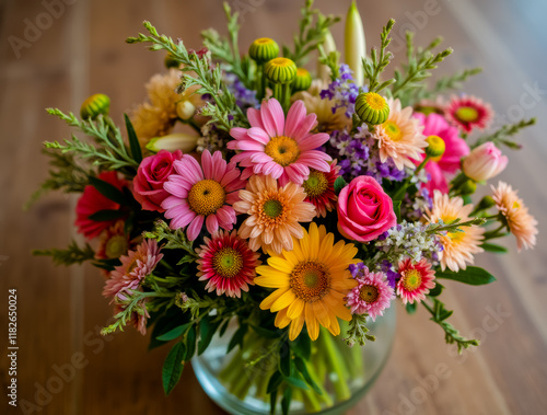 vase, flower, orange, pink, glasses, way, bouquet, floral, table, wooden, nature, spring, decorative, green, beauty, summer, white, plant, blooming, yellow, fresh, bunch, flora, blossom, arrangement, bright, background, colourful, daisy, closeup, wedding, gift, romantic, red, leaf, design, celebration, gerbera, rose, holiday, florist, garden, vintage, day, composition, chrysanthemum, birthday, woman