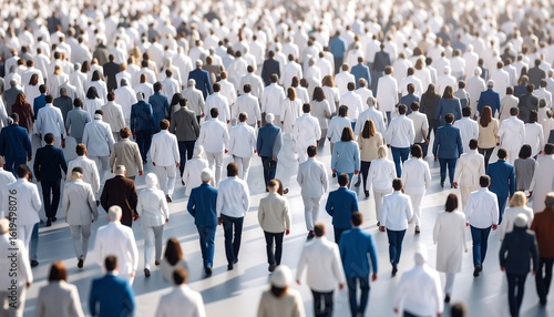 crowd, people, walking, suit, white, blue, massa, movement, multitude, anonymity, urban, city, togetherness, collective, assembly, group, individual, society, community, human, motion, perspective