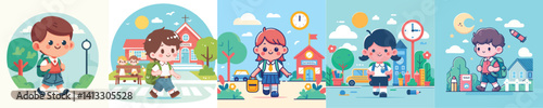 school, children, education, boy, cartoon, student, girl, happy, children, vector, illustration, children, go, back, character, elementary, people, childhood, study, backpack, cute, little, kindergarten, back to school, pupil, flat, isolated, young, person, cognition, walk, background, learn, uniform, classroom, preschool, female, hand, primary, bag, together, male, view, toddler, white, cheerful, schoolboy, funny, group