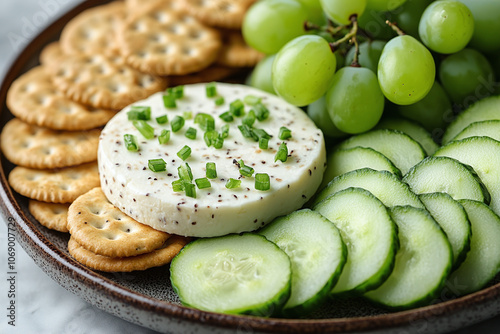 vegan, cheese, platter, cracker, grape, sliced, cucumber, food, fresh, vegetarian, nourishment, snack, healthy, ingredient, organic, diet, board, epicure, cookery, salad, raw, vegetable, meal, alternative, homemade, eating, background, health, natural, lunch, cooking, green, white, overhead, dinner, soy, traditional, breakfast, mediterranean, tomatoes, fruit, topview