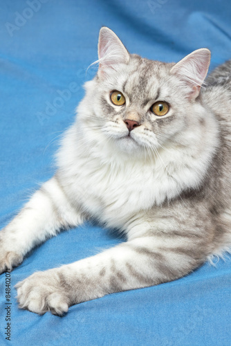 cat, young, scottish, small, fluffy, long-haired, cute, white, grey, pet, 1, mammal, kitten, furry, felino, blue background, domestic, children, beautiful, animal, adorable, look, puzzle, calendar, fur, funny, breed, soft, sweet, british, charming, purebred, striped, pedigree, paw, eye, brown, long hair, studio, exhibition, postcard, notepad, wallpaper, grey, angry, wicked, claw, tiger