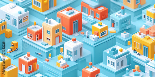 isometric, city, building, miniature, urban, rendered, colourful, vibrant, playful, geometric, block, house, structure, town, metropolis, scene, illustration, graphic, art, digital, creation, model, artwork, computer, rendering, visual, abstract, modern, style, creative, artistic, construction, three-dimensional