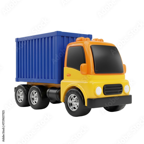 truck, toy, vehicle, transport, cargo, delivery, blue, yellow, wheel, cab, container, plastic, render, automobile, shipment, freight, commercial, transportation, logistic, machine, road, business, drive, engine, traffic, industry, service, distribution, auto, travel, speed, power, equipment, element, design, object, graphic, symbol, signs, shape, art, clip art, drawing, transparent, isolated, alpha
