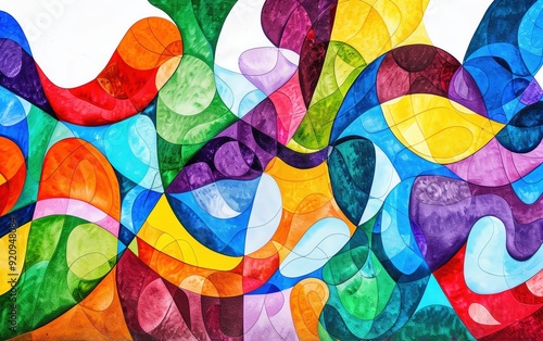 A vibrant abstract artwork featuring dynamic, colorful wave patterns and fluid shapes, ideal for modern decor and creative projects.