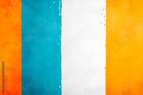 A vibrant abstract composition featuring vertical stripes in orange, turquoise, and white against a textured background.