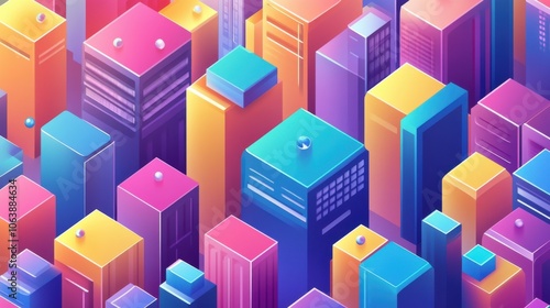 A vibrant abstract design featuring overlapping cubes in warm hues on a deep blue background.