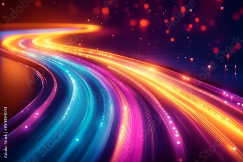A vibrant abstract image showcasing colorful light trails, evoking a sense of motion and energy set against a dark background