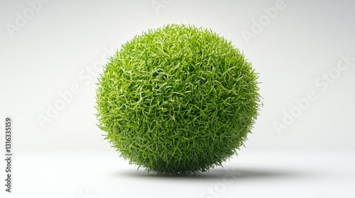 A vibrant and natural-looking grass ball, perfectly round and textured, set against a clean white background, realistic rendering