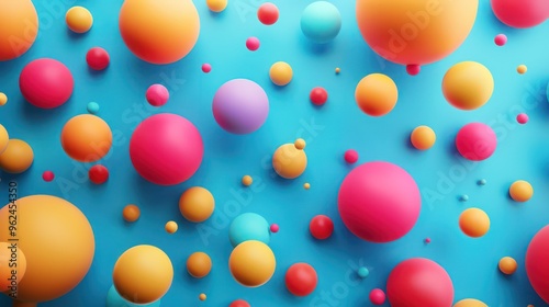A vibrant arrangement of colorful spheres on a blue background, creating a playful and dynamic visual effect.