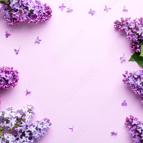 A vibrant arrangement of delicate lila flowers gracefully blooms against a soft pink background, creating a harmonious and cheerful visual contrast.