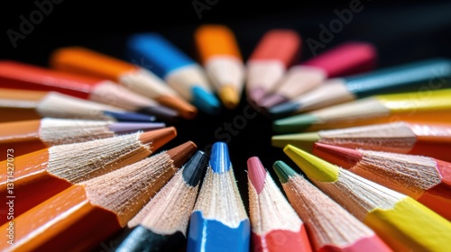 A vibrant array of colored pencils arranged in a circular pattern on a black background
