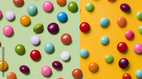 A vibrant array of scattered colorful candies on a background, symbolizing the food safety concept and highlighting concerns about potentially dangerous and toxic food additives.