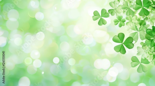 A vibrant backdrop of green clovers with a soft, blurred effect, evoking a fresh and lively atmosphere.
