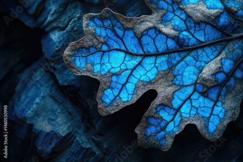leaf, blue, vein, texture, dark, nature, photo, macro, detail, intricate, pattern, vibrant, colours, autumn, fall, oak leaf, plant, biology, art, abstract, background, wallpaper, dark blue, closeup, stone, rock, contrast, beauty, aesthetic, mystical, magical, surreal, organic, natural, design, illustration