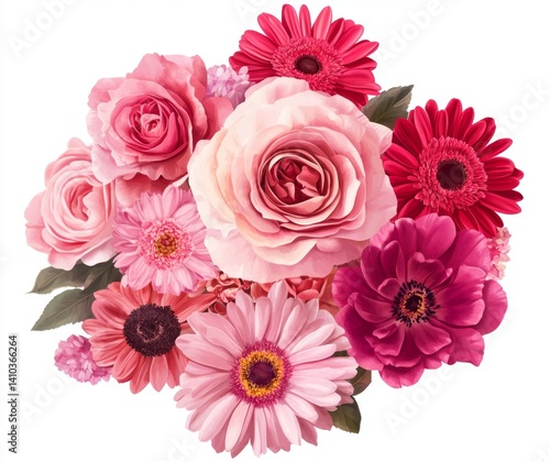 flower, bouquet, pink, red, rose, daisy, gerbera, floral, arrangement, beautiful, spring, summer, romantic, elegant, gift, present, celebration, party, wedding, decoration, decor, love, happy, fresh, nature, beauty, bloom, colourful, artistic, design, illustration, graphic, digital, realistic, composition, garden, springtime, summer, stem, leaf, pretty, charming, sophisticated, decorative, high-coloured, vibrant