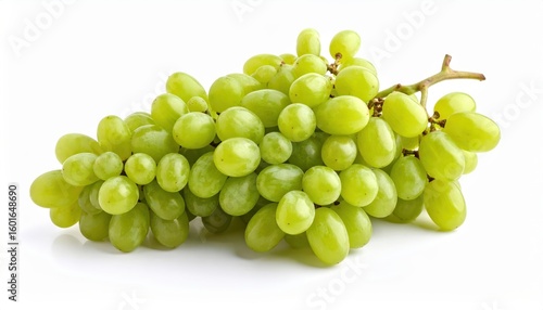 A vibrant bunch of fresh green grapes isolated on a white background, ideal for healthy eating and natural food themes.