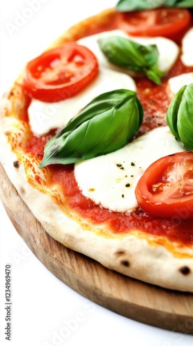 pizza, margherita, mozzarella, basil, tomatoes, closeup, food, italian, cookery, cheese, fresh, delicious, isolated, white background, wooden board, savoury, colourful, topview, epicure, traditional, receipe, vibrant, appetising, culinary, crust, classic, vegetarian, herb, ingredient, tasty, bright, simple, decorative, slice, mouth-watering, baked, homemade, rustic, topping, artistic, plating, comfort food, refreshing, indulgent, light, vertical