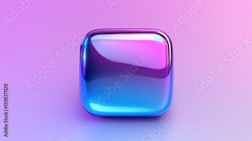 A vibrant close-up of a square button featuring a striking blend of blue and purple hues, set against a soft pink background that enhances its vivid colors and modern design.