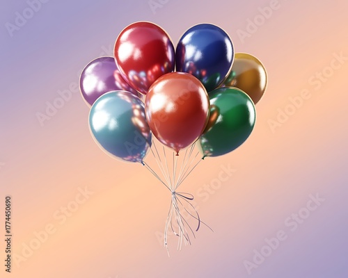 balloon, celebration, birthday, anniversary, event, decoration, festive, colourful, vibrant, glossy, shiny, metallic, red, blue, green, purple, yellow, orange, gradient, sunset, sky, background, floating, flying, bunch, flocked, group, light, soft, dreamy, whimsical, joyful, happy, fun, holiday, surprise, graphic design, illustration, studio shot, isolated
