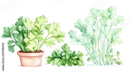 cilantro, plant, garden, leaf, green, pot, herb, vegetable, season, fresh, winter, decor, set, nature, beauty, root, vibrant, lush, urban, water, germinating, harvest, compost, flower, showcase, edible, disease, design, collection, transplant, stage, indoor, organic, sunlight, summer, landscape, garnish, foliage, flora, cookery, watercolor, paint