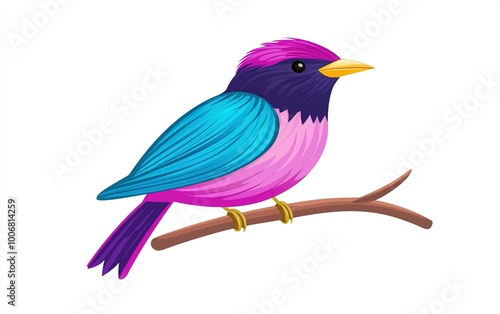 bird, colourful, vibrant, nature, tree branch, art, wildlife, illustration, cute, animal, design, fauna, feather, purple, blue, pink, perch, natural, beauty, whimsical, creative, charme, elegance, scene, joyful, habitat, species, artwork, tropical, playful, calmness, summer, environment, birdsong, bright, exotic, serenity, representation, inspiration, ecology, harmony