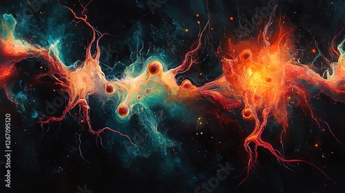 A vibrant depiction of neurons glowing with electric impulses in a dark environment, intricate and dynamic