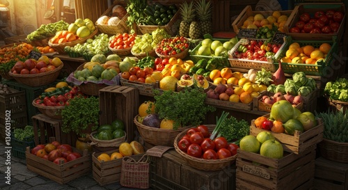 A Vibrant Display of Fresh Produce at an Outdoor European Market Stand