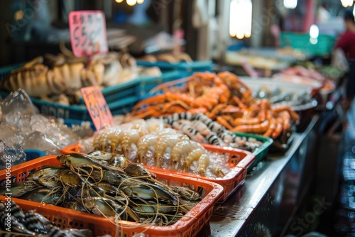 seafood, fish, seafood, crustacean, squid, octopus, shrimp, prawn, lobster, crab, clam, mussel, oyster, scallop, seaweed, marin, life, ocean, sea, market, food, cookery, culinary, shopping, travel