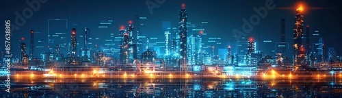 futuristic, city landscape, night, illuminated, skyscraper, reflections, water, modern, urban, architecture, vibrant, skyline, light, building, metropolis, city, neon, technology, nightscape, tower block, glowing, waterfront, downtown, night view