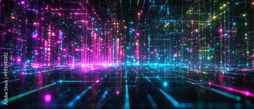 digital, neon, light, grid, technology, abstract, futuristic, design, colourful, pattern, space, visualisation, datum, network, vibrant, graphic, illumination, environment, cyber, aesthetic, three-dimensional, depth, creative, art, energy, motion, background, bright, line, science, virtual, illusion, modern, simulation, connection, innovation, dynamic, structure, tech, aglow, scene, visual, wave, atmosphere, pixel, cybernetic, geometry, flow