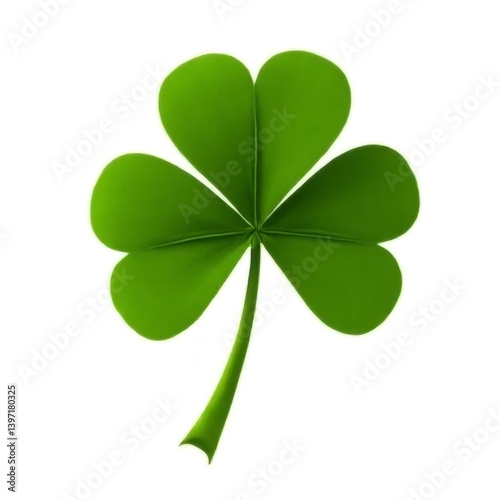 A vibrant green shamrock, symbolizing luck and Irish heritage, on a pure white background with a smooth, glossy finish.