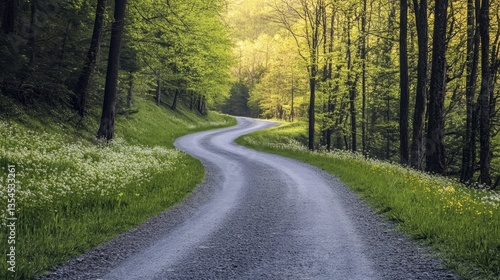 road, asphalt, mountain, meadow, flower, wildflower, daisy, bloom, sunny, sky, summer, spring, nature, landscape, scenic, travel, journey, view, vibrant, colourful, green, tree, hill, path, way, curve, winding, drive, adventure, freedom, beauty, serene, peaceful, tranquil, picturesque, background, image, photo, illustration, bright, fresh, blossom, botany, flora, ecology, environment, rural
