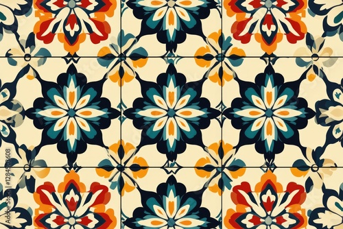 floral, pattern, tile, design, mosaic, art, colourful, wallpaper, oriental, motif, decorative, hand-made, style