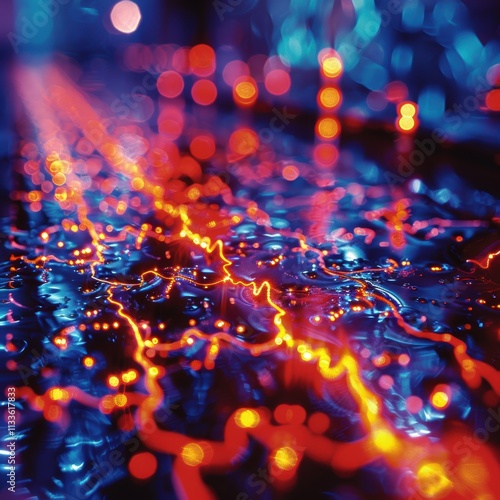 A vibrant, high-tech visualization of a digital network with glowing lines and bokeh effects, illustrating the concept of a futuristic technology landscape