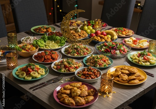 A vibrant Iftar feast featuring a variety of traditional dishes