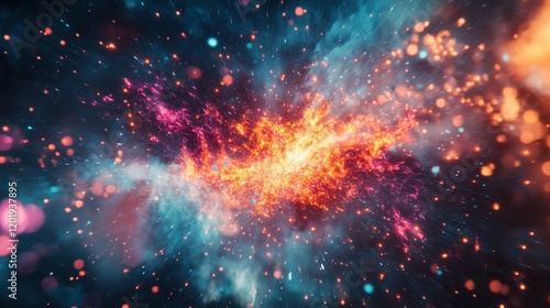 A vibrant image of a high-energy particle collision experiment in a large hadron collider setting