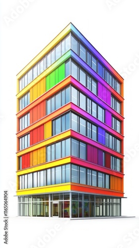A Vibrant Modern Architectural Building with Colorful Facade Design, Multicolored Office Building, Contemporary Business Structure, Colorful Office Building
