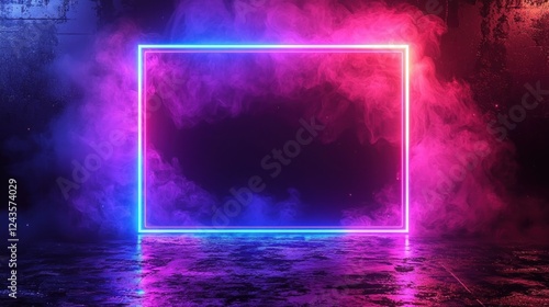 A vibrant neon frame surrounded by colorful smoke effects in a dark environment, perfect for creative digital projects