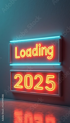 neon, loading, 2025, signs, bright, vibrant, anticipation, excitement, glowing, colourful, modern, future, new year, illuminated, technology, design, creative, atmosphere, celebration, countdown, digital, festive, stylish, contemporary, light, energy, optimism, hope, innovation, artistic, visual, trend, dynamic, message, vivid colors