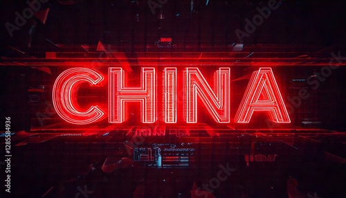 a vibrant neon sign spelling out the word "CHINA", exuding a futuristic, high-tech atmosphere