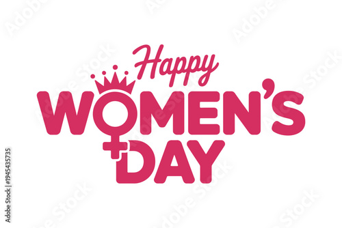 A vibrant pink vector graphic celebrating Women's Day with a crown and feminine symbol