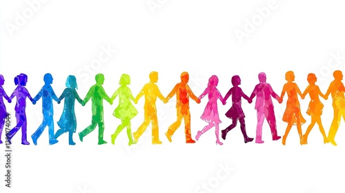 A Vibrant Rainbow of Unity: People Holding Hands in a Colorful Watercolor Illustration