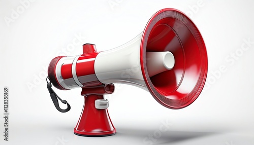 A vibrant red and white megaphone positioned to amplify sound, reflecting a classic design often associated with rallies and events.