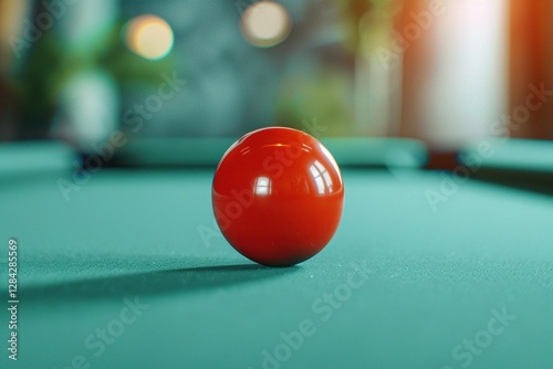 A vibrant red billiard ball resting on a green felt table, bathed in warm sunlight, creating an inviting atmosphere for a game of pool.