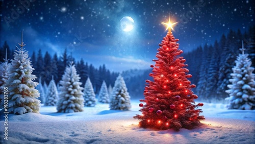 adorned, bright, christmas, crimson, forest, red, red christmas, winter, tree, snow, holiday, landscape, christmas, snowflake, illustration, vector, celebration, cold, tree, pine, season, card, decoration, night, scene, nature, blue, sky, snowflake, snowy